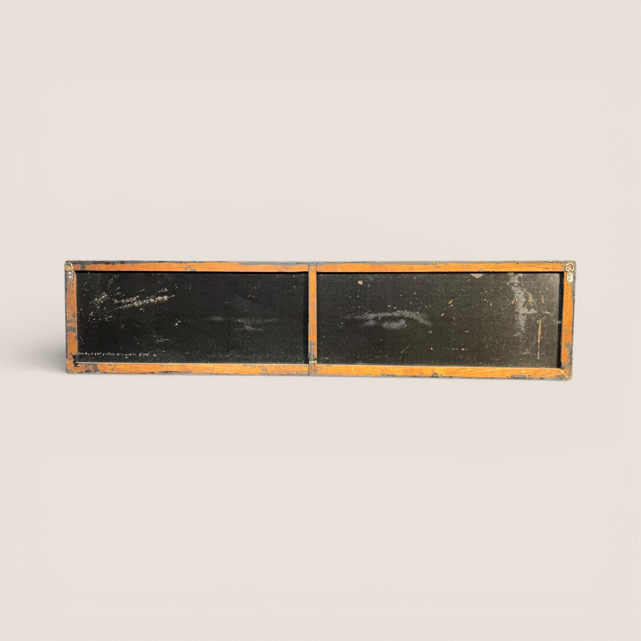 The sign retains its original wood frame, which remains intact and stable. The frame enhances the sign’s architectural presence and confirms its period construction. The overall presentation is cohesive and unaltered, with the surface and frame working together as a complete and original object.