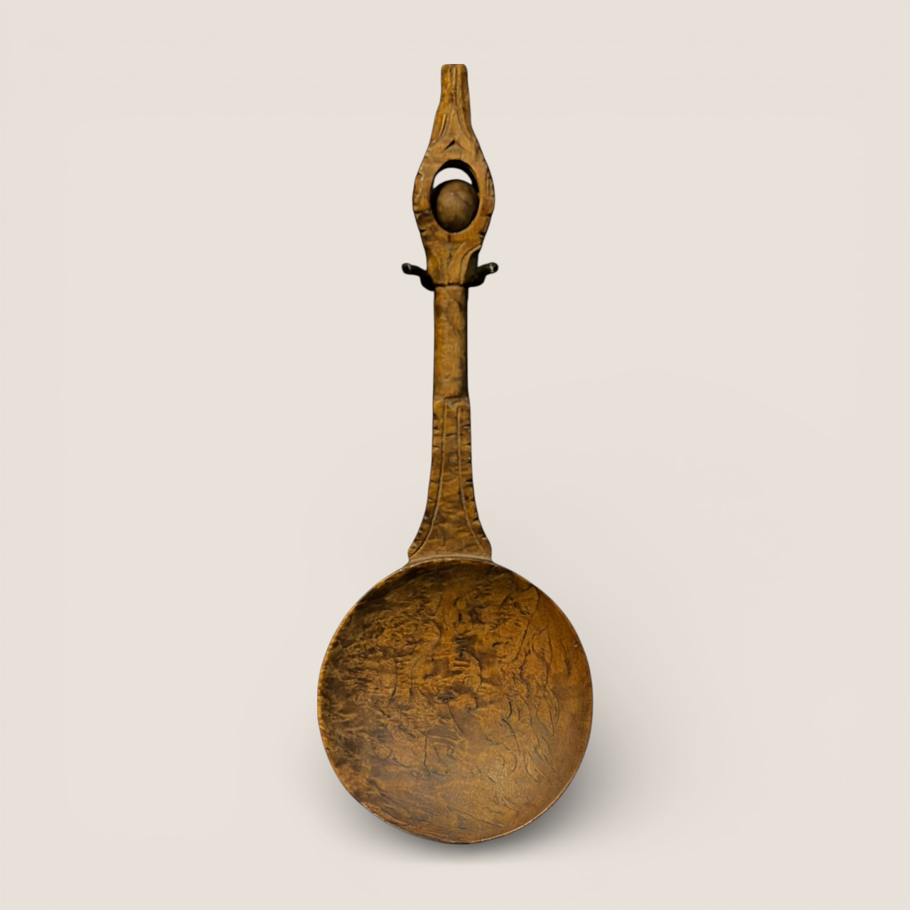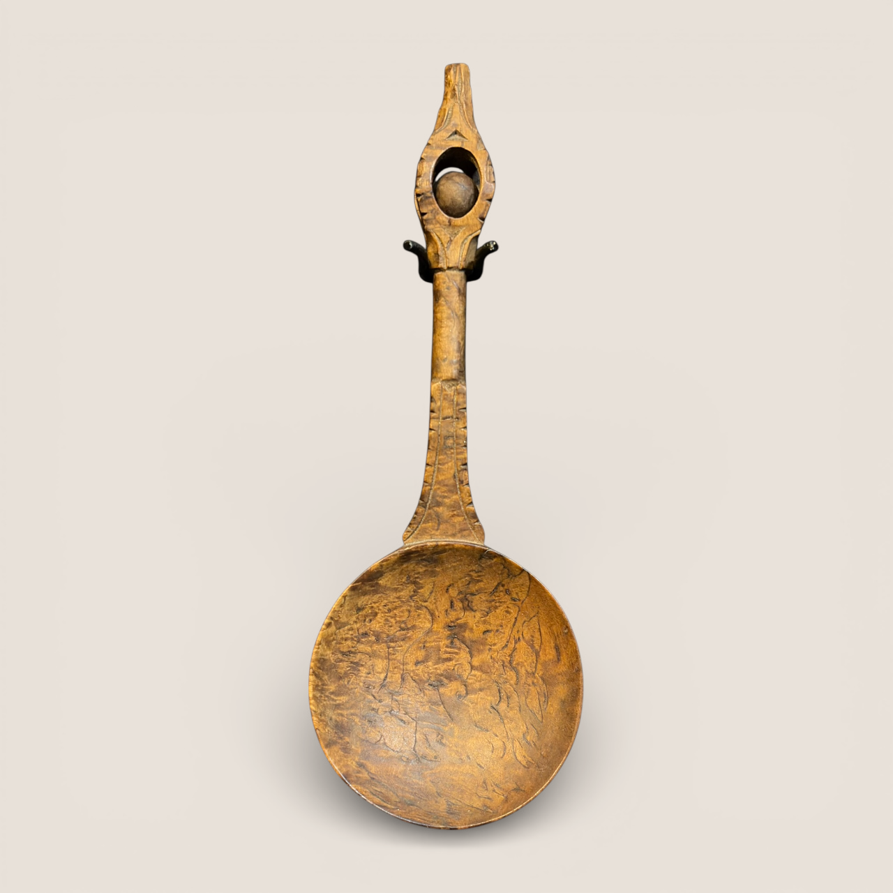 Spoons of this quality—particularly those carved from burl with such pronounced figuring and elegant form—are increasingly sought after by collectors of early American treen and folk art. Both visually compelling and beautifully balanced in the hand, this example stands as a superb representation of 19th century vernacular carving.